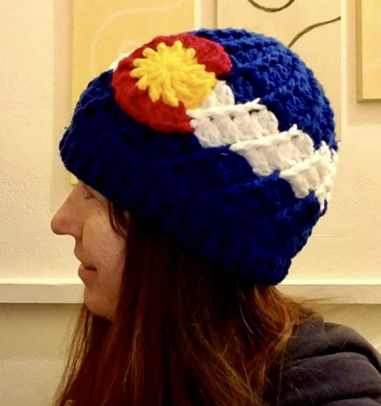 Colorado Beanie made from yarn and created by a local crafter Julie McCready. You won't get this in a retail store, so pick it up now for yourself or for a very special gift to someone.